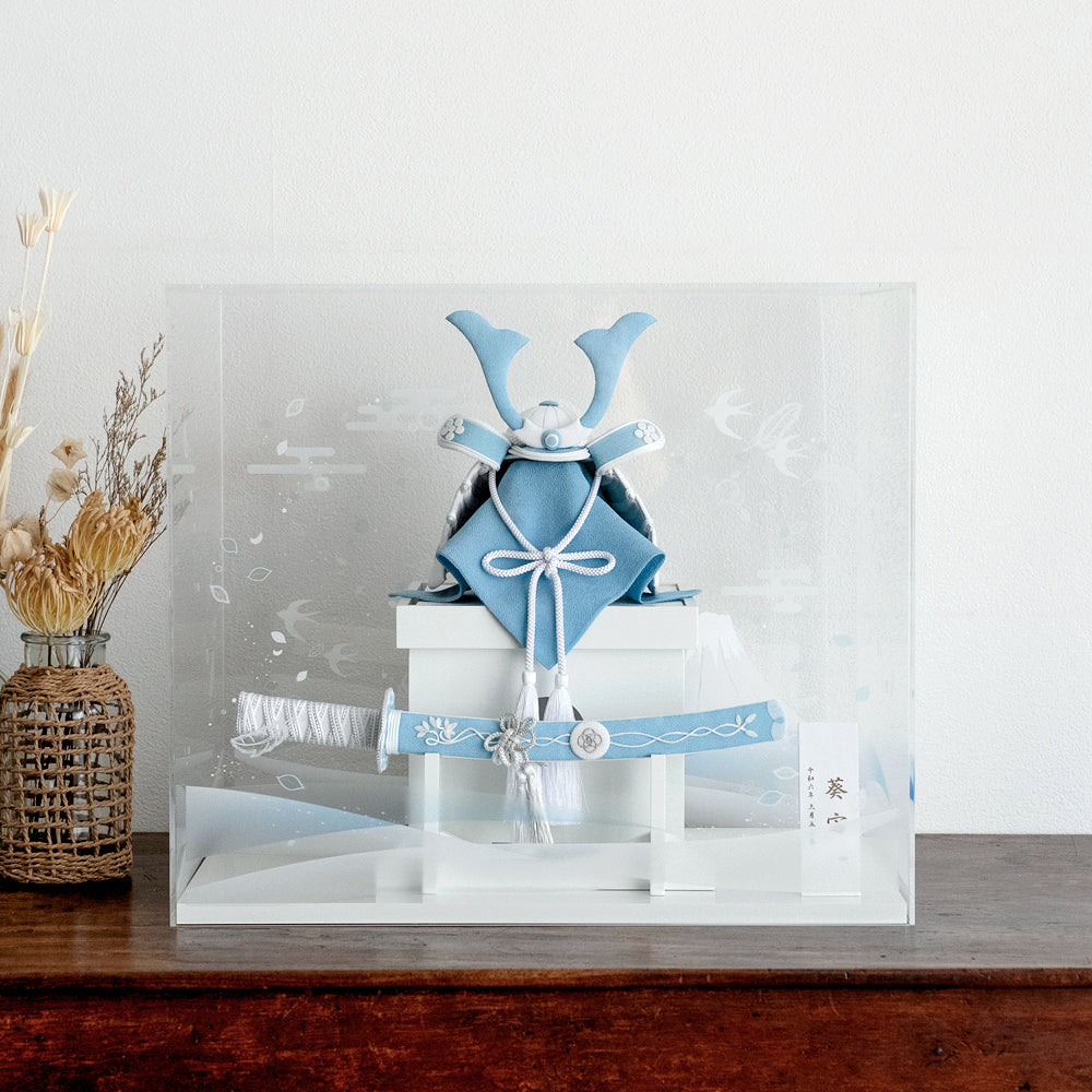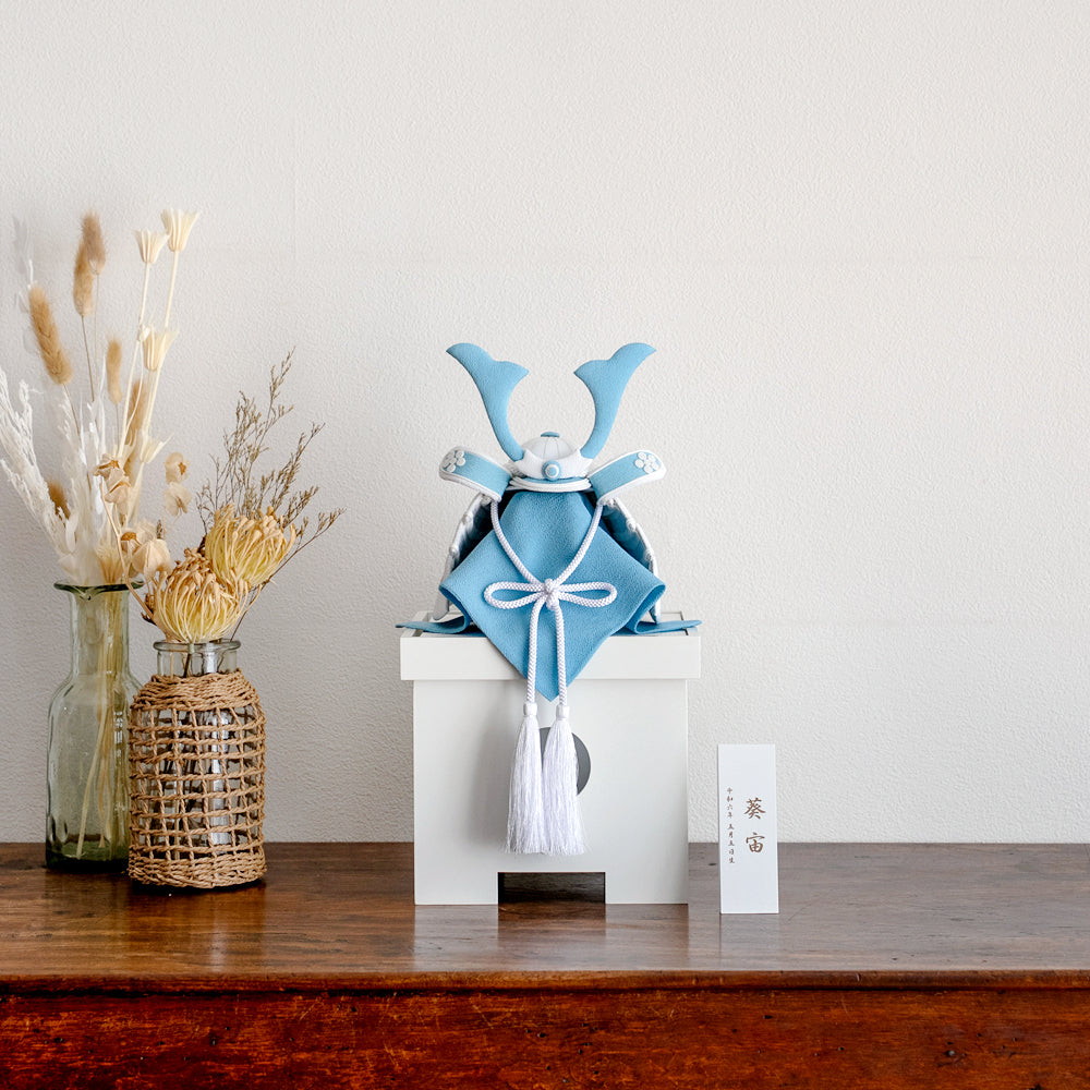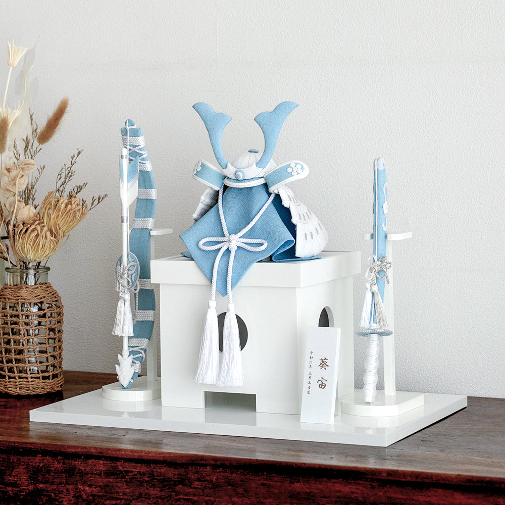 クールで男の子らしい、青と白の色合いも爽やかな、おしゃれでかっこいい兜飾りです!